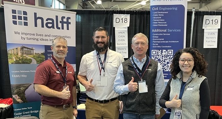 From January through March, Halff teams will attend career fairs across the region to meet future talent, answer questions and highlight early-career opportunities across disciplines. These events allow students to learn more about the work we do, the people behind our projects and how their interests can translate into meaningful impact. Review the full spring career fair schedule and stop by to start the conversation.
